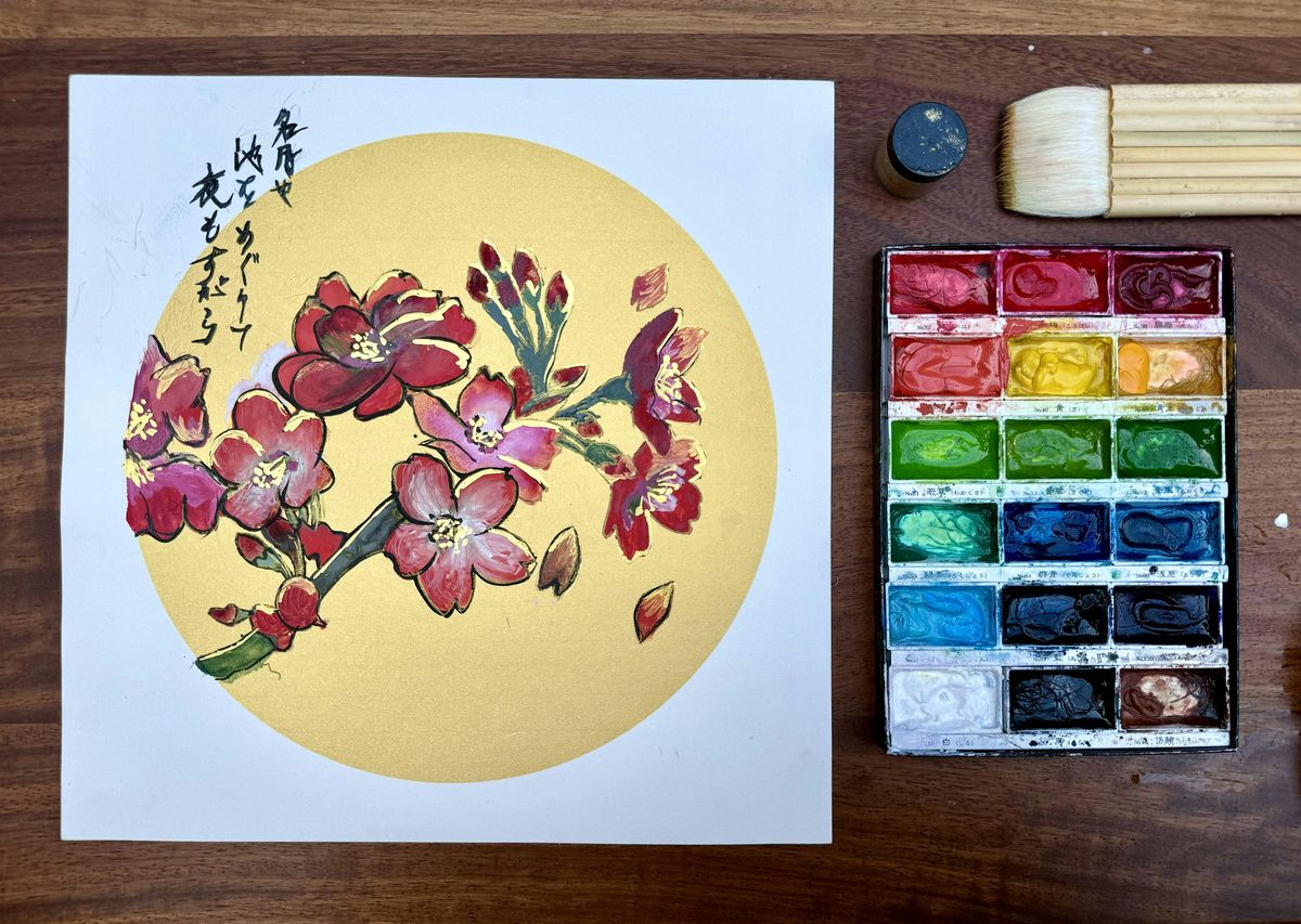 This is our flagship workshop. We’ll teach you some basics of the Japanese Painting style known as Nihonga (日本画) and teach you how to paint using traditional materials that includes bamboo brushes, sumi ink, Gansai Tambi 顔彩耽美 (Traditional Japanese colours), gold leaves on rice paper.