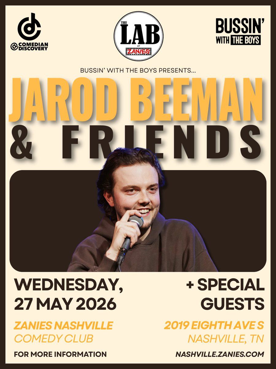 ✨ Experience the magic of Jarod Beeman, where moments become memories that last a lifetime! 🏛️ The iconic The Lab at Zanies in Nashville, TN sets the perfect stage for an unforgettable celebration on May 26th, 2026 at 06:00 PM. 🌟 It's been a curated experience that brings together the best of entertainment and innovation, creating an atmosphere of wonder and excitement. From the moment you arrive, you'll be immersed in a world where the ordinary transforms into the extraordinary. 🎊 Book early to secure your place in what promises to be an event that will be talked about for years to come!http://maps.seatics.com/GeneralAdmissionEvent_2021-07-08_1017_08162024_172544_SVGC_tn.png