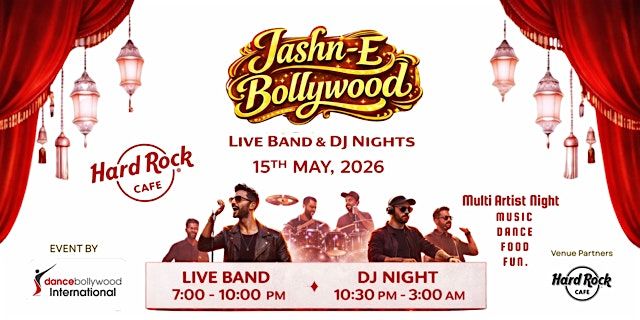 Expect a power-packed lineup featuring a live band with multiple singers, bringing your favorite tracks to life, followed by multiple DJs spinning high-energy sets to keep you on the dance floor all night. Adding to the excitement, enjoy vibrant dance performances that bring the true spirit of Bollywood to the stage.