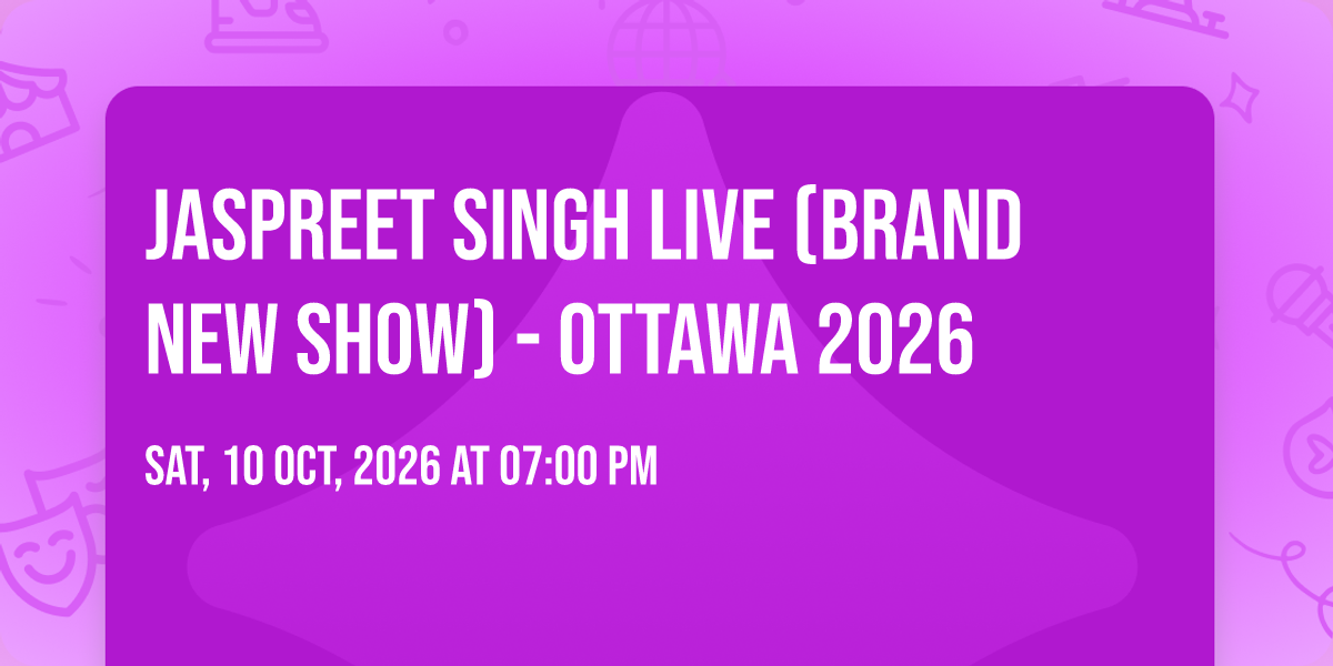 Get ready for an awesome night with Jaspreet Singh performing live at the Kailash Mital Theatre! Join us on October 10, 2026 at 7:00 PM (Eastern Time) for a fresh, hilarious show you won’t want to miss. Bring your friends,family, grab your tickets, and enjoy an unforgettable evening full of laughs and good vibes. See you there!