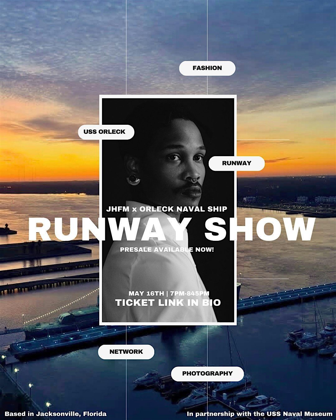 Event will consist of an cocktail hour, live music from local DJ, open house of the USS NAVAL SHIP, pier & water views and an all exclusive fashion show. Expect an evening of design, entertainment, and network.