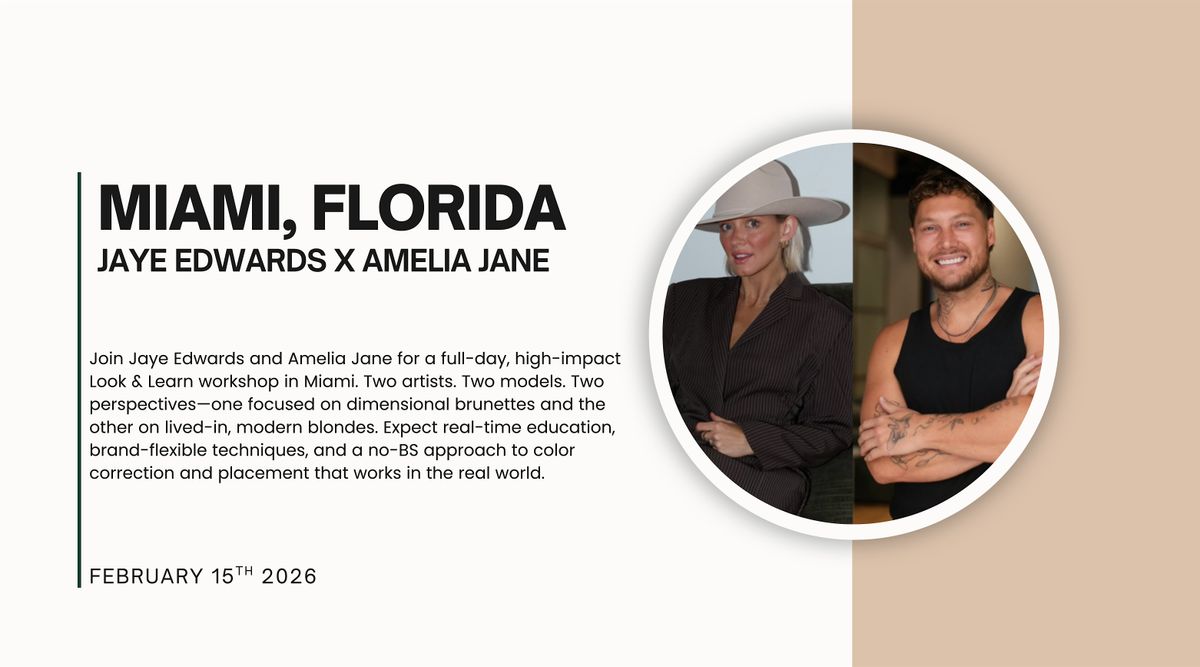 Join Jaye Edwards and Amelia Jane for a full-day, high-impact Look & Learn workshop in Miami. Two artists. Two models. Two perspectives—one focused on dimensional brunettes and the other on lived-in, modern blondes. Expect real-time education, brand-flexible techniques, and a no-BS approach to color correction and placement that works in the real world.