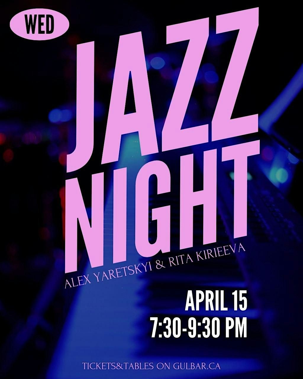 Join us for a Wednesday Jazz Night at Gulbar featuring Alex Yaretskyi and Rita Kirieieva.