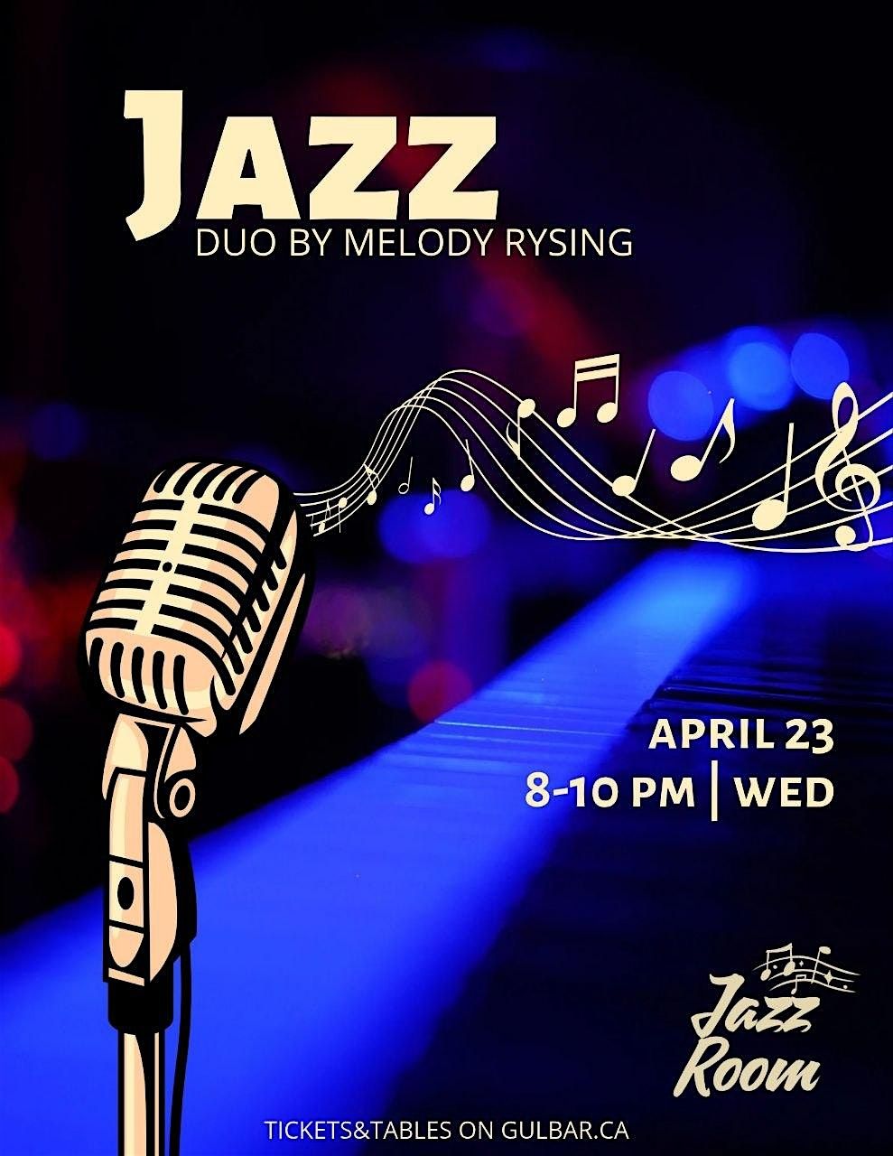 Join us at Gulbar for an intimate evening of jazz, blues, and cabaret-inspired live music with Melody Rysing and pianist.