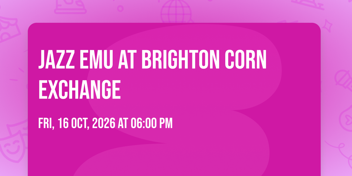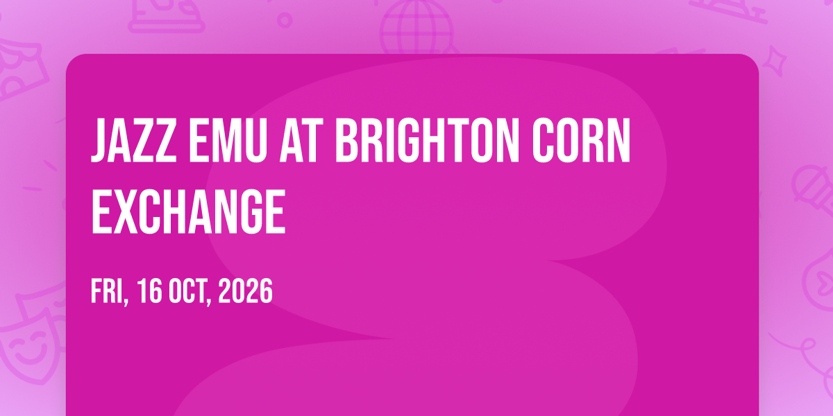🌟 Be part of history at Jazz Emu at Brighton Corn Exchange, an extraordinary gathering that will captivate your imagination! 🏛️ The prestigious Brighton Corn Exchange in Brighton, EN sets the stage for an unforgettable experience on October 16th, 2026 at 06:00 PM. ✨ They are bringing together the finest elements of entertainment and innovation to create moments that will take your breath away. From the moment you arrive, you'll be immersed in an atmosphere of wonder and excitement. 🎯 This carefully planned event ensures every guest experiences something truly special. 🎊 Early booking is recommended for this must-attend event of the season!