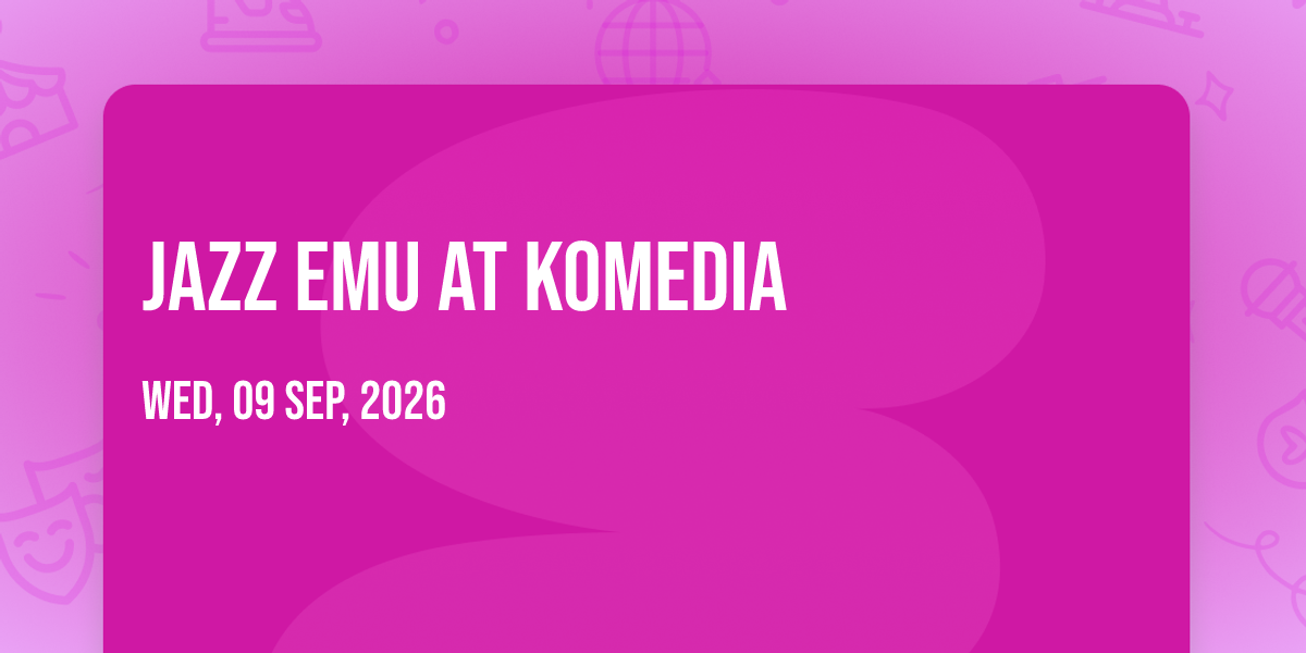 π Journey into wonder at Jazz Emu at Komedia, where extraordinary experiences await around every corner! ποΈ Set against the backdrop of Komedia in dynamic Bath, EN, this event promises to exceed all expectations. π Join us on September 9th, 2026 at 08:00 PM for a celebration that combines innovation, entertainment, and community spirit in perfect harmony. β¨ There will be an atmosphere where memories are made and stories come alive, ensuring every guest experiences something truly remarkable. π This is more than just an event; it's a journey into the extraordinary!