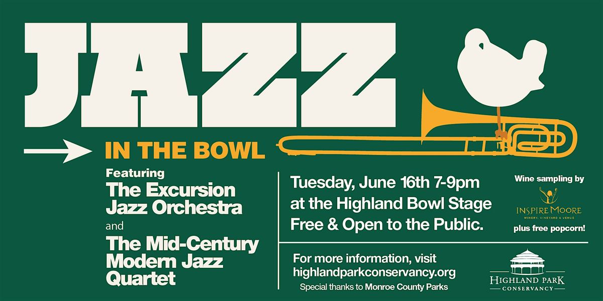 Jazz in the Bowl is a free outdoor concert–bring your lawn chair and settle in to enjoy the music. There will be free popcorn at the concert and wine sampling from Inspire Moore Winery, Vineyard and Venue.