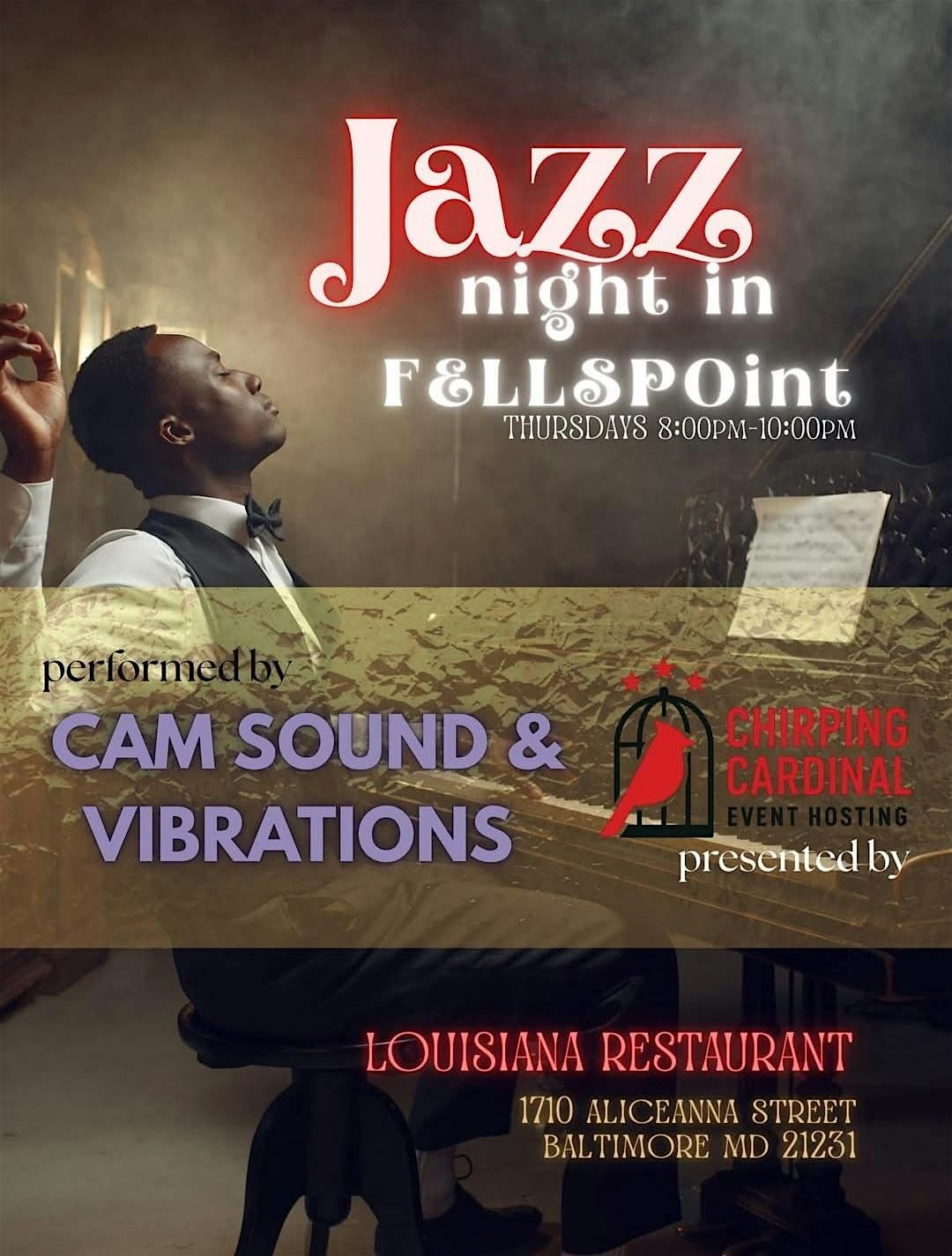 Come chill with us at Jazz Night in Fells Point! It's an in-person event where the smoothest jazz tunes fill the air. Whether you're a jazz aficionado or just looking to unwind, this night promises great vibes and live beats. Bring your friends, grab a drink, and let the music take over. Don't miss out on a fantastic evening in one of the coolest spots around! Largest dance floor in fells point with life music by Cam Sounds & Vibrations. All ages are welcome . We will have valet on hand for $10.00 as well as on street parking