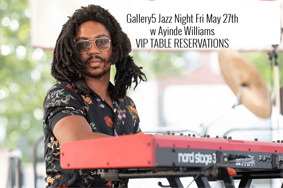 Jazz Night with Ayinde Williams VIP Table Reservations. Enjoy a night of jazz with the best seats in the house! We have four top cafe tables and two top cocktail tables. Limited tables available, but admission to the event is free. Grab a table to enjoy your night, have a homebase for your crew, a place to keep your drinks/snacks, and these funds go towards supporting the artists on stage!