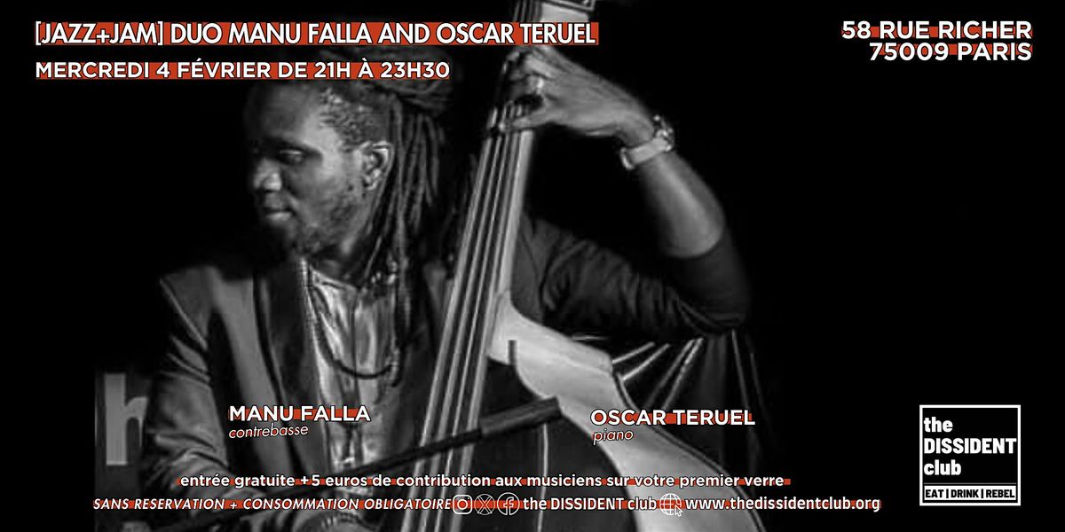 Manu Falla à la contrebasse et Oscar Teruel au piano vous invitent à un concert de jazz incontournable. Un dialogue vibrant, entre groove profond et improvisation raffinée. Deux artistes complices, une énergie unique et un moment live intense à ne surtout pas manquer. Laissez-vous emporter par cette expérience musicale exceptionnelle.