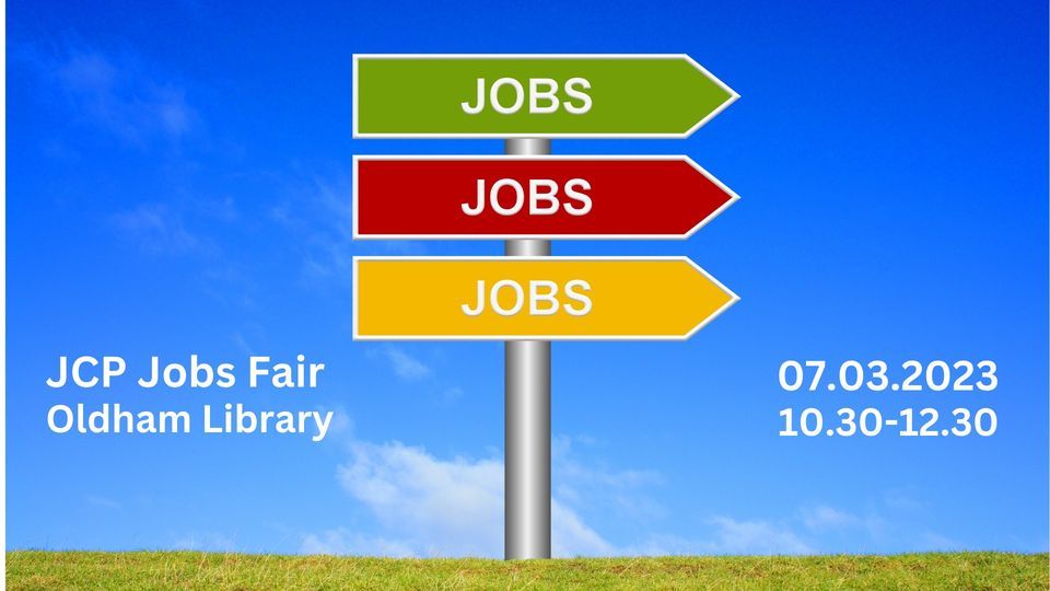 The next JobCentre Plus Jobs Fair will be held at Oldham Library on Tuesday 7th March 2023. There will be 30+ employers on hand. The last event was packed - book a free slot or drop in 10.30 - 12.30. Everybody welcome! This event is organised by Oldham JobCentre Plus.