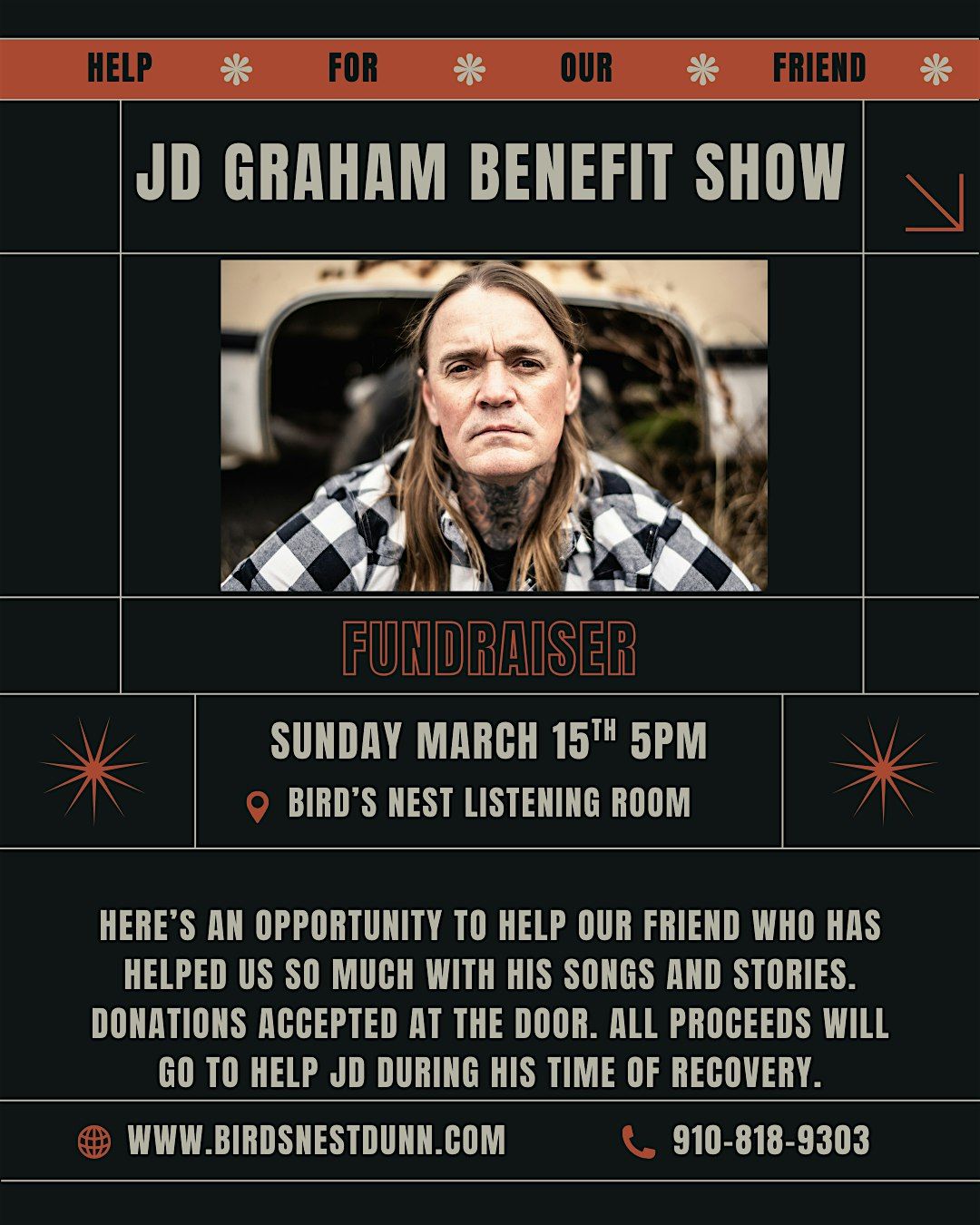 Join us for a fun and meaningful evening at 311 E Broad St! The JD Graham benefit show is happening on March 15, 2026 at 5:00 PM (Eastern Time). Come hang out, enjoy great music, and support a great cause. Don't miss out on this awesome night with good vibes and good people. See you there!