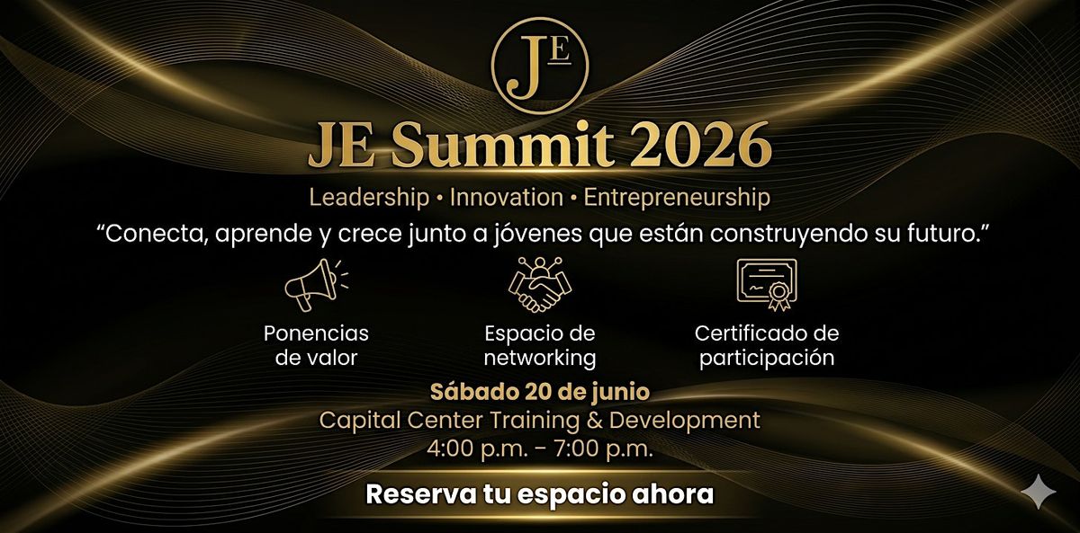 El JE Summit 2026 es un evento presencial enfocado en liderazgo, innovación y emprendimiento, creado para jóvenes que desean crecer personal y profesionalmente.