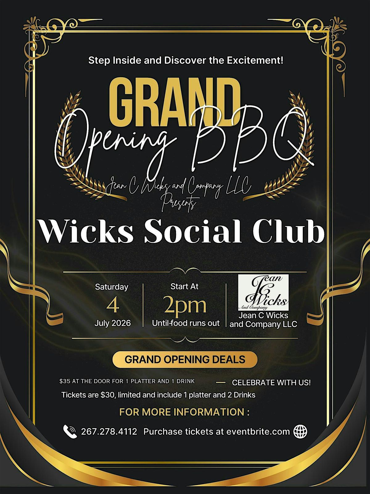 Jean C Wicks and Company LLC Presents WICKS SOCIAL CLUB: Reopening BBQ