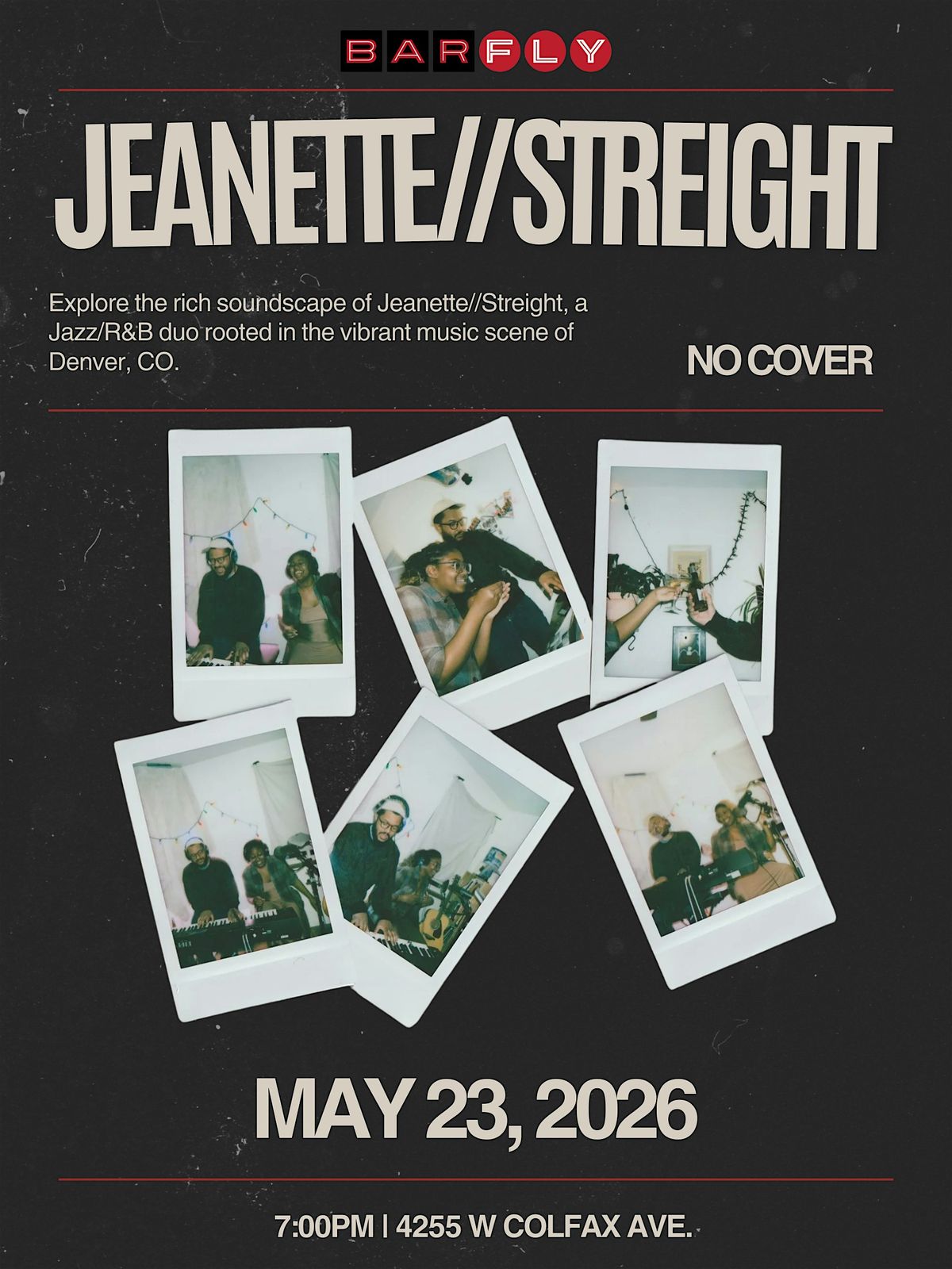 Explore the rich soundscape of Jeanette//Streight, a Jazz/R&B duo rooted in the vibrant music scene of Denver, Colorado. Comprising vocalist Elyse Midgyett and instrumentalist Dylan Streight, the duo embodies a harmonious blend of diverse musical influences and genuine passion.