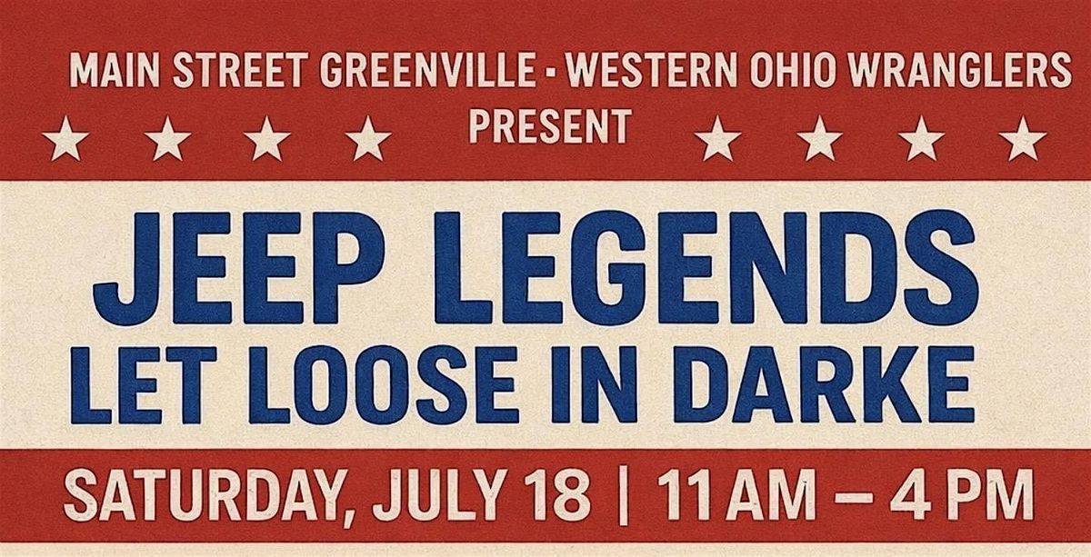 Jeep Legends Let Loose in Darke is back for its 2nd year, bringing even more horsepower, community spirit, and family fun to Downtown Greenville! Hosted by Main Street Greenville and the Western Ohio Wranglers, this high-energy summer event celebrates Jeep culture with a Show & Shine display, vendors, food trucks, raffles, giveaways, and activities for all ages. Whether you’re showing off your ride or just enjoying the excitement, it’s the perfect day to gather with fellow Jeep lovers and experience the thrill together. Bring your Jeep, bring your crew, and join the rally!