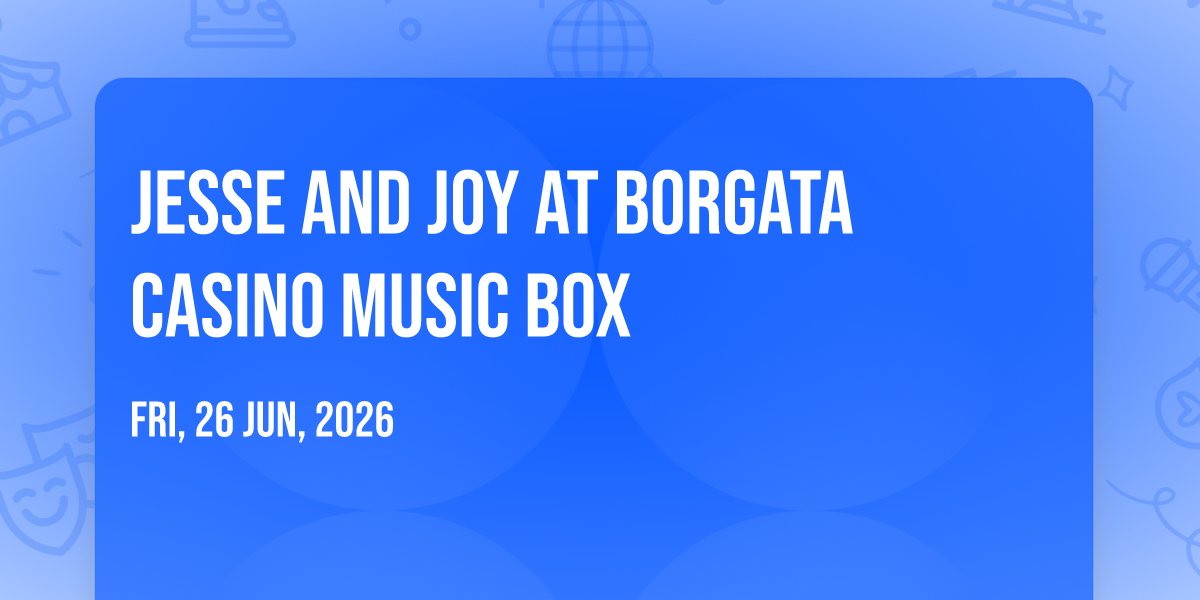🌟 Step into a world of wonder at Jesse and Joy at Borgata Casino Music Box, where extraordinary moments await! 🏛️ Located at Borgata Casino Music Box in dynamic Atlantic City, NJ, this event will become the talk of the town. 📅 Join us on June 26th, 2026 at 07:30 PM for a celebration that defies the ordinary. ✨ This curated experience brings together the best of entertainment, culture, and community spirit. Every detail has been thoughtfully planned to ensure an unforgettable experience for all our guests. 🎯 Take advantage of this opportunity to be part of something special. 🎊 Early registration is recommended as space is limited!