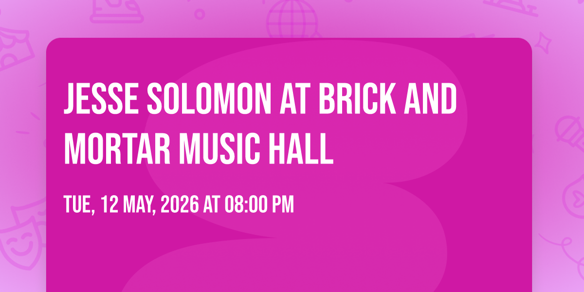 🌟 Be part of history at Jesse Solomon at Brick and Mortar Music Hall, an extraordinary gathering that will captivate your imagination! 🏛️ The prestigious Brick and Mortar Music Hall in San Francisco, CA sets the stage for an unforgettable experience on May 12th, 2026 at 08:00 PM. ✨ They are bringing together the finest elements of entertainment and innovation to create moments that will take your breath away. From the moment you arrive, you'll be immersed in an atmosphere of wonder and excitement. 🎯 This carefully planned event ensures every guest experiences something truly special. 🎊 Early booking is recommended for this must-attend event of the season!