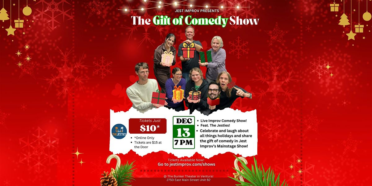 Itās the perfect seasonal pick-me-up: joyful, unpredictable, and brimming with the kind of cheer only live comedy can deliver! Come unwrap the fun and celebrate the holidays with a night of pure, spontaneous delight! Come take your seat by the fireplace and see us welcome our newest cast member to the Jesties family!