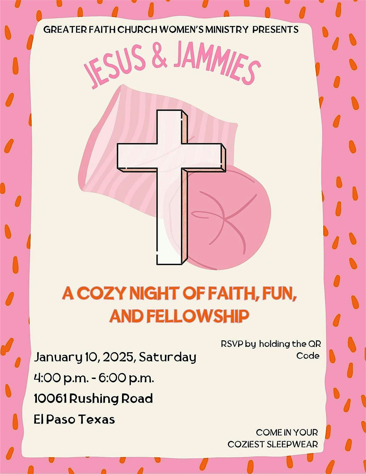 Come as you are for a cozy evening of worship, prayer, and reflection at Greater Faith. This relaxed women’s gathering is a safe space to rest, recharge, and connect with God and each other. You will have the opportunity to write a letter to yourself for 2026, reflect on your hopes and prayers, and share in fellowship with other women of faith. Step away from the rush and leave feeling refreshed, encouraged, and renewed in spirit.