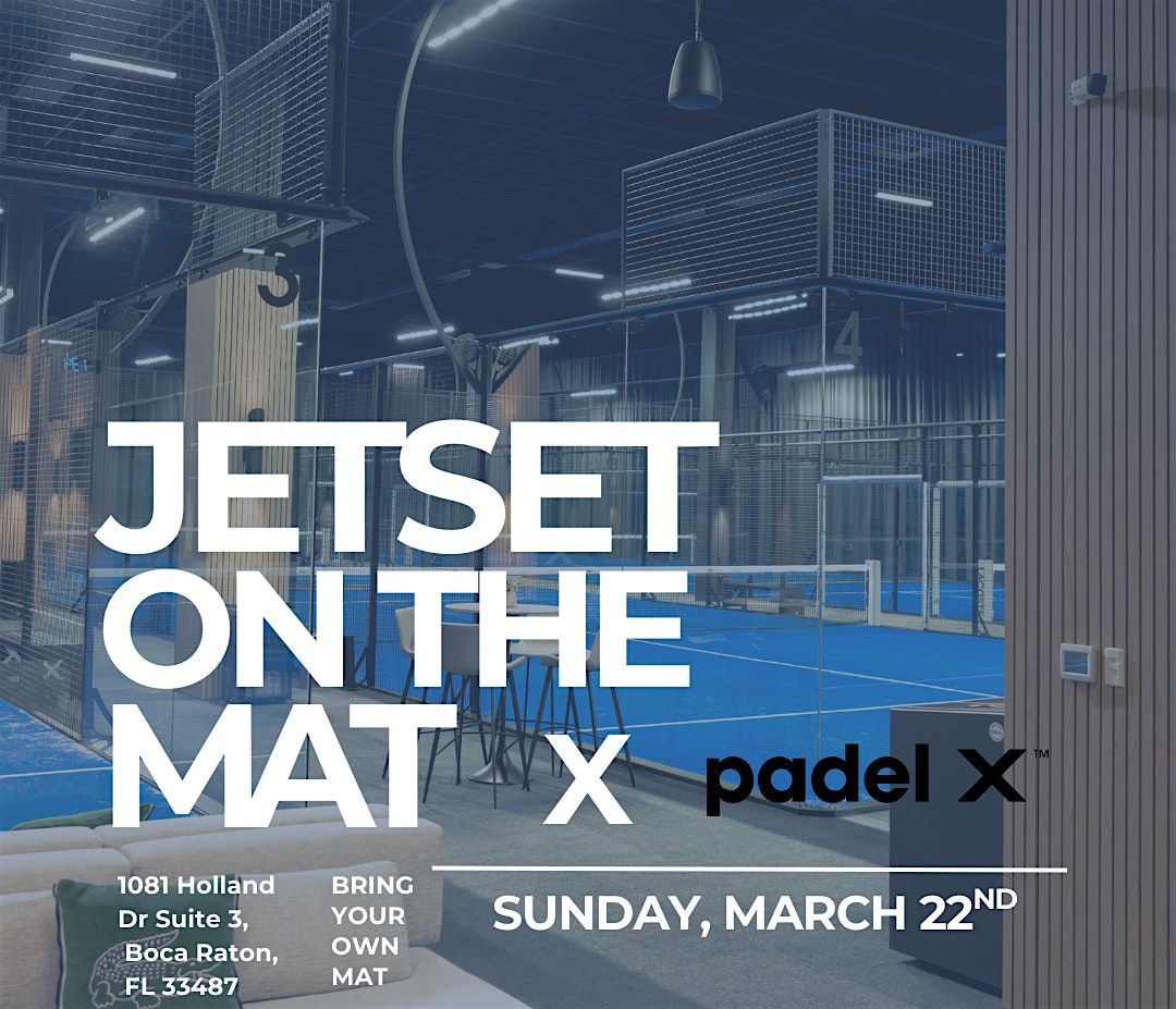 Hosted by JETSET Pilates Delray and JETSET West Boca at Padel X Boca, this wellness event combines a signature JETSET On The Mat Pilates class with padel clinics, open play, and recovery amenities.