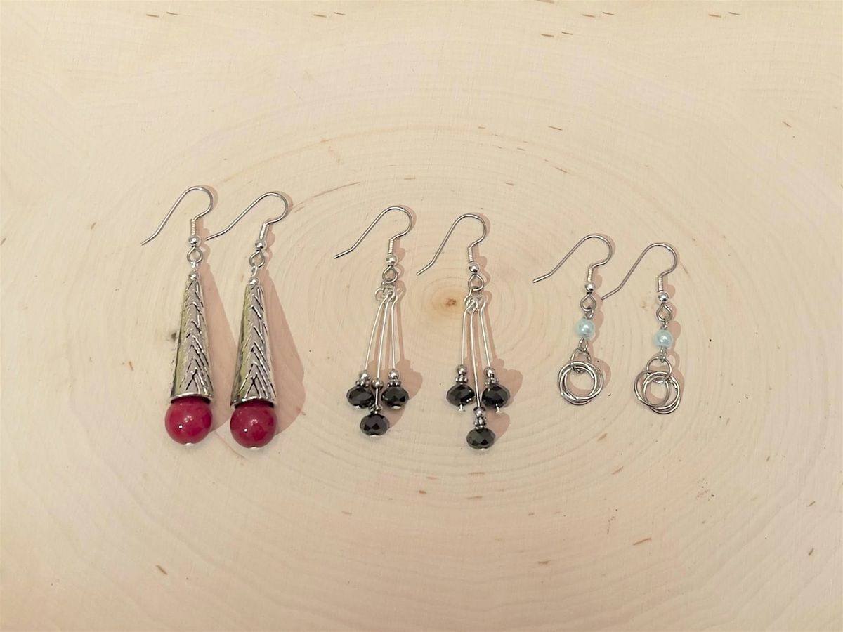 The participants will learn the basic techniques involved in making dangle earrings which can also be used to create chandelier earrings. You get to make and take 2 pairs of earrings home at the end of the 90 minutes class.