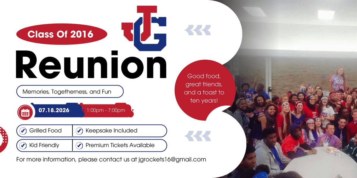 Hey everyone! It's time to catch up and reminisce at the JGHS Class of 2016 Reunion.