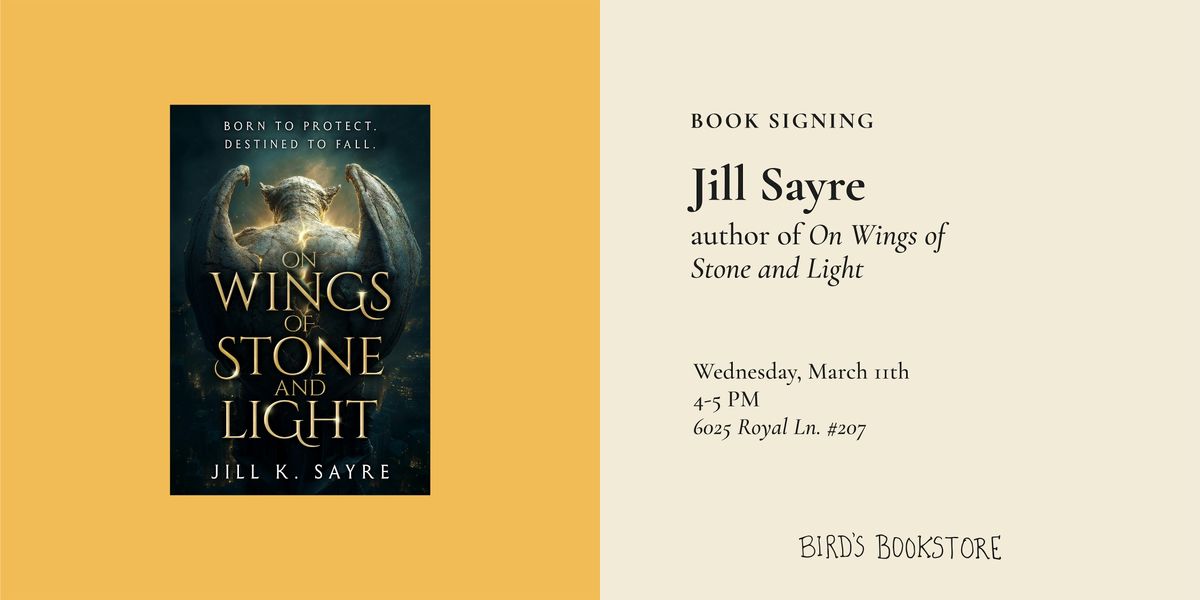 Bird's is pleased to host local author, Jill Sayre, for a book signing of her YA novel, On Wings of Stone and Light.