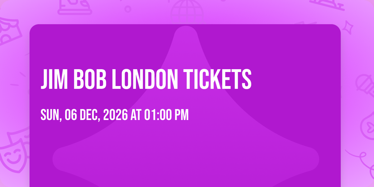 Jim Bob at 100 Club✨ Discover the extraordinary at Jim Bob London Tickets, where magic meets reality in ways you've never imagined! 🏛️ Set in 100 Club nestled in bustling London, EN, this event promises to be a landmark occasion. 📅 Taking place on December 6th, 2026 at 01:00 PM, it's going to create an atmosphere where every moment becomes a cherished memory. 🌟 Immerse yourself in an experience crafted with attention to every detail, designed to surprise and delight at every turn. They have worked tirelessly to ensure this event exceeds all expectations, bringing together elements of entertainment, innovation, and pure joy. ✨ With tickets available at 241.56 EUR, your journey awaits. 🎊 Don't miss your chance to be part of this remarkable journey!