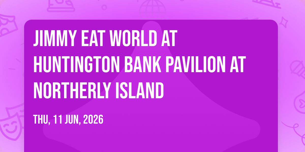 π Prepare to be amazed at Jimmy Eat World at Huntington Bank Pavilion at Northerly Island, the most anticipated gathering of the season! π Set against the stunning backdrop of Huntington Bank Pavilion at Northerly Island in vibrant Chicago, IL, this event promises to redefine your expectations. π Mark your calendars for June 11th, 2026 at 07:00 PM and get ready to immerse yourself in an atmosphere of wonder and excitement. β¨ From the moment you arrive, you'll be transported into a world where memories are made and stories come alive. They have crafted an experience that perfectly harmonizes entertainment, innovation, and community spirit. π Join us as we create moments that will be discussed for years!