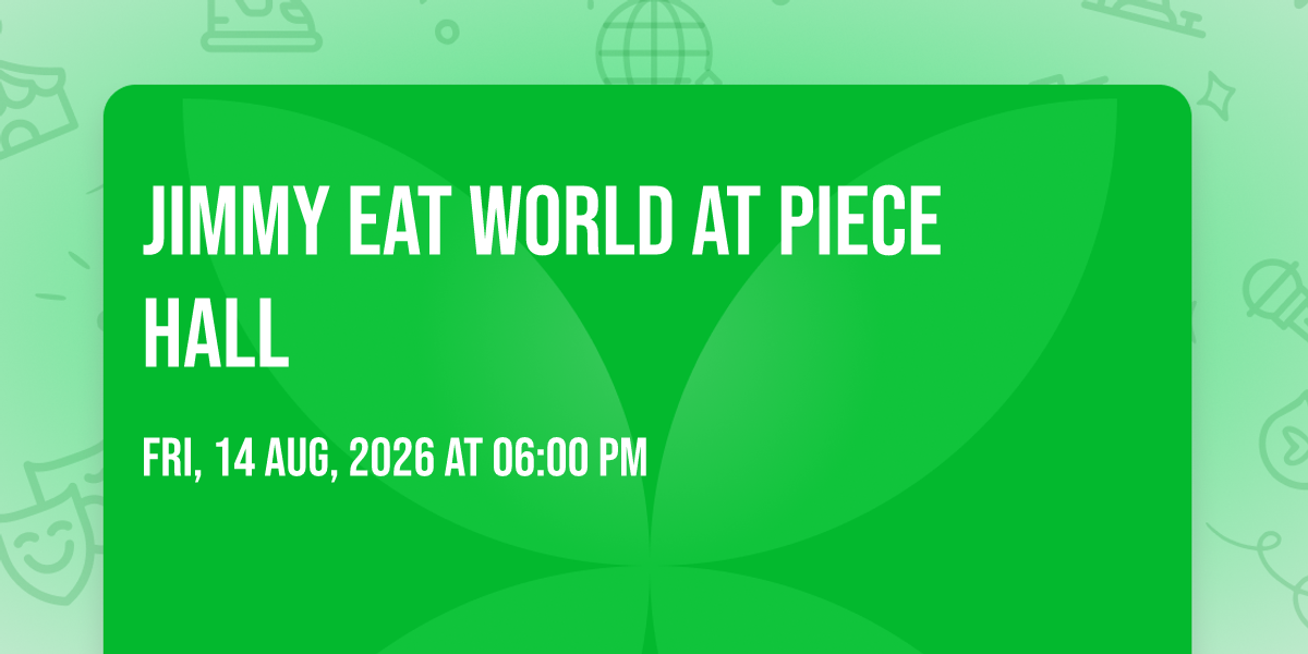 π Step into a world of wonder at Jimmy Eat World at Piece Hall, where extraordinary moments await! ποΈ Located at Piece Hall in dynamic Halifax, EN, this event will become the talk of the town. π Join us on August 14th, 2026 at 06:00 PM for a celebration that defies the ordinary. β¨ This curated experience brings together the best of entertainment, culture, and community spirit. Every detail has been thoughtfully planned to ensure an unforgettable experience for all our guests. π― Take advantage of this opportunity to be part of something special. π Early registration is recommended as space is limited!