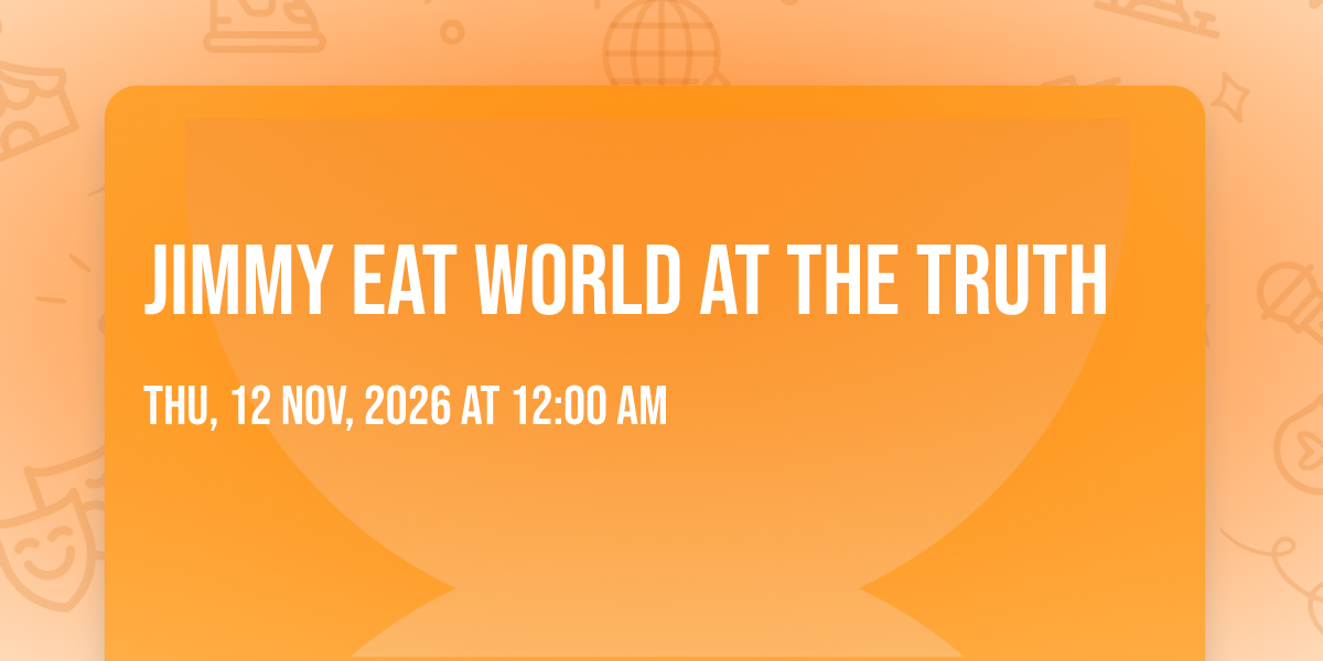 ✨ Discover the extraordinary at Jimmy Eat World at The Truth, where magic meets reality in ways you've never imagined! 🏛️ Set in The Truth nestled in bustling Nashville, TN, this event promises to be a landmark occasion. 📅 Taking place on November 12th, 2026 at 12:00 AM, it's going to create an atmosphere where every moment becomes a cherished memory. 🌟 Immerse yourself in an experience crafted with attention to every detail, designed to surprise and delight at every turn. They have worked tirelessly to ensure this event exceeds all expectations, bringing together elements of entertainment, innovation, and pure joy. 🎊 Don't miss your chance to be part of this remarkable journey!