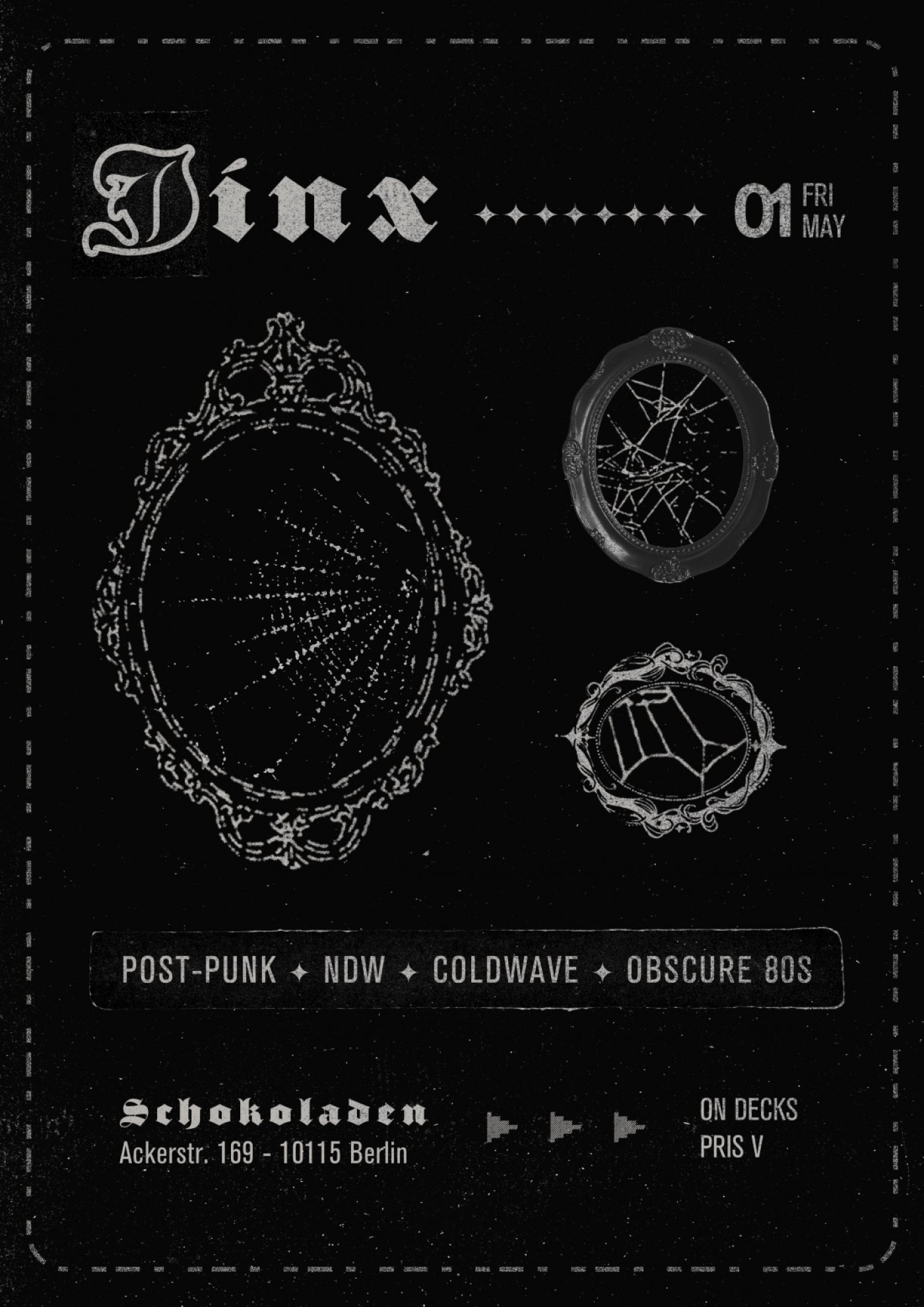JINX returns to Schokoladen with a night of post-punk, coldwave, minimal synth and obscure 80s selections. Expect a dancefloor-driven set moving between dark textures, analog rhythms, and underground classics.
