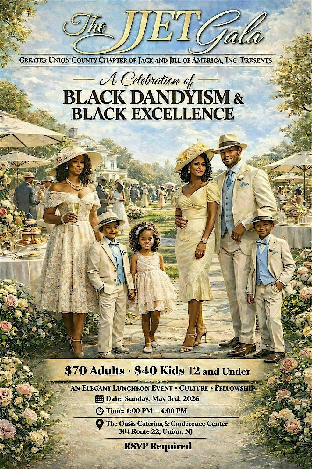 The Greater Union County Chapter of Jack and Jill of America proudly presents the JJET Gala, an elegant affair inspired by the timeless style, cultural pride, and expressive power of Black Dandyism. This sophisticated luncheon celebrates the beauty, resilience, and excellence of the Black family while honoring the tradition of using fashion as a statement of identity, dignity, and creativity.