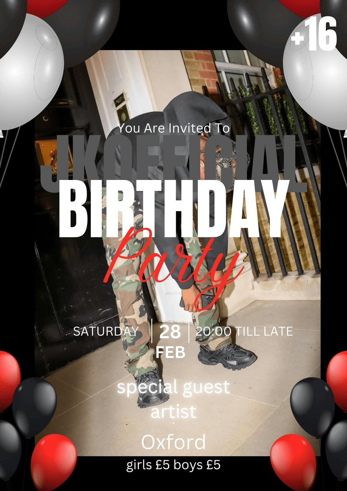 Join us for an unforgettable 17th birthday party at a secret location in Oxford! The celebration runs from 7 PM to 11 PM and is open to everyone aged 16 and over. Entry is just £5 for both boys and girls. Get ready for an exciting night with a special guest artist performing live. Don’t miss out on this exclusive event—come and make memories that will last a lifetime!location will be out closer towards the date.