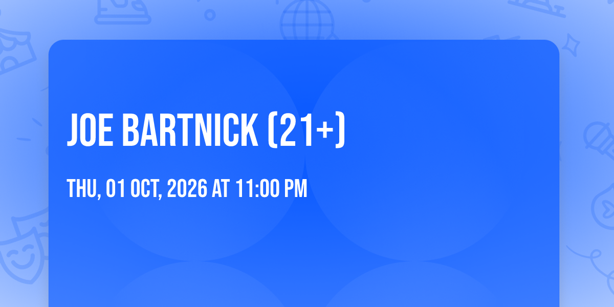 π Location: 40.4091, -79.915π Welcome to Joe Bartnick (21+), where the impossible becomes possible and dreams take flight! ποΈ Join us at Pittsburgh Improv in the heart of Homestead, PA for an event that will redefine your expectations. π On October 1st, 2026 at 11:00 PM, witness the transformation of space and time into something truly magical. β¨ It's a curated experience combining the best of innovation, entertainment, and community spirit, creating moments that will be remembered for years to come. Whether you're a first-time visitor or a seasoned enthusiast, prepare to be amazed. π Book now to ensure your place in this unforgettable experience!