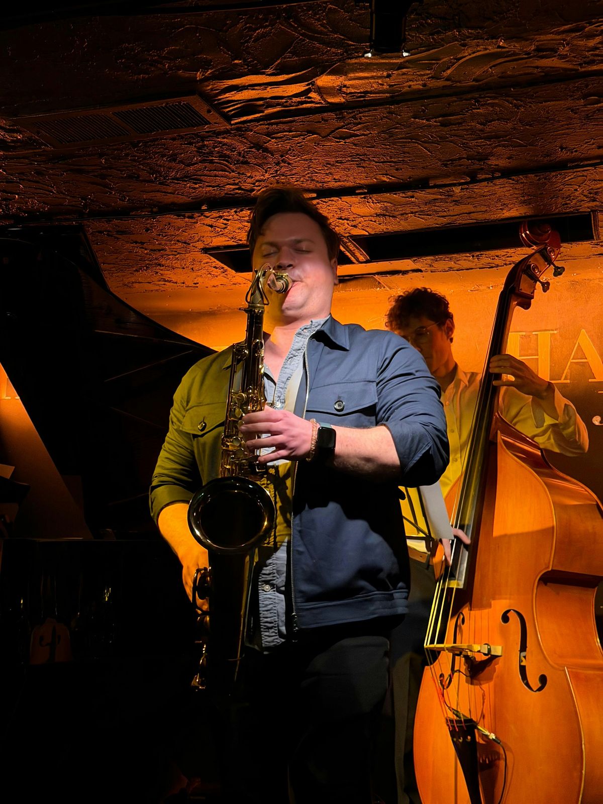 Joe Mackley graduated from the Royal College of Music in 2022 with a first class honours degree in joint principle jazz and classical saxophone. Since then he has fully immersed himself in the London jazz scene, studying with some of the top saxophonists in the UK including Leo Richardson, Graeme Blevins and Will Vinson. With his quartet Joe has played sold out shows at Hampstead Jazz Club and The Spice of Life and has appeared at Pizza Express, Ronnie Scott’s and Alfie’s as part of other projects. Quickly becoming a sought after saxophonist, his playing brings together influences from Johnny Griffin, John Coltrane, Joe Henderson and Joshua Redman.
