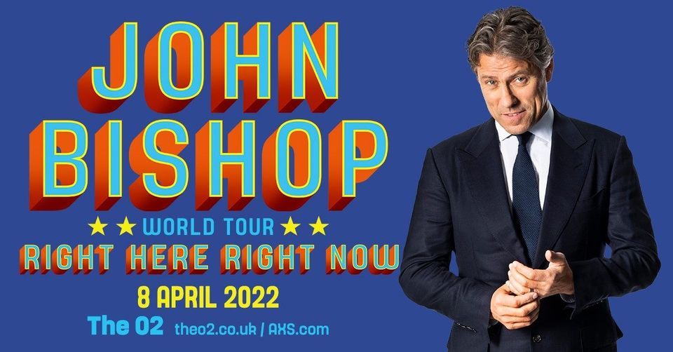 Comedy superstar John Bishop is coming to The O2 with his highly anticipated brand-new stand up show – Right Here, Right Now. This will be John’s eighth stand up show and it is shaping up to be his best yet. It will see him performing across the UK, Ireland, America, Canada and Europe. He can’t wait to be back on the road again!!