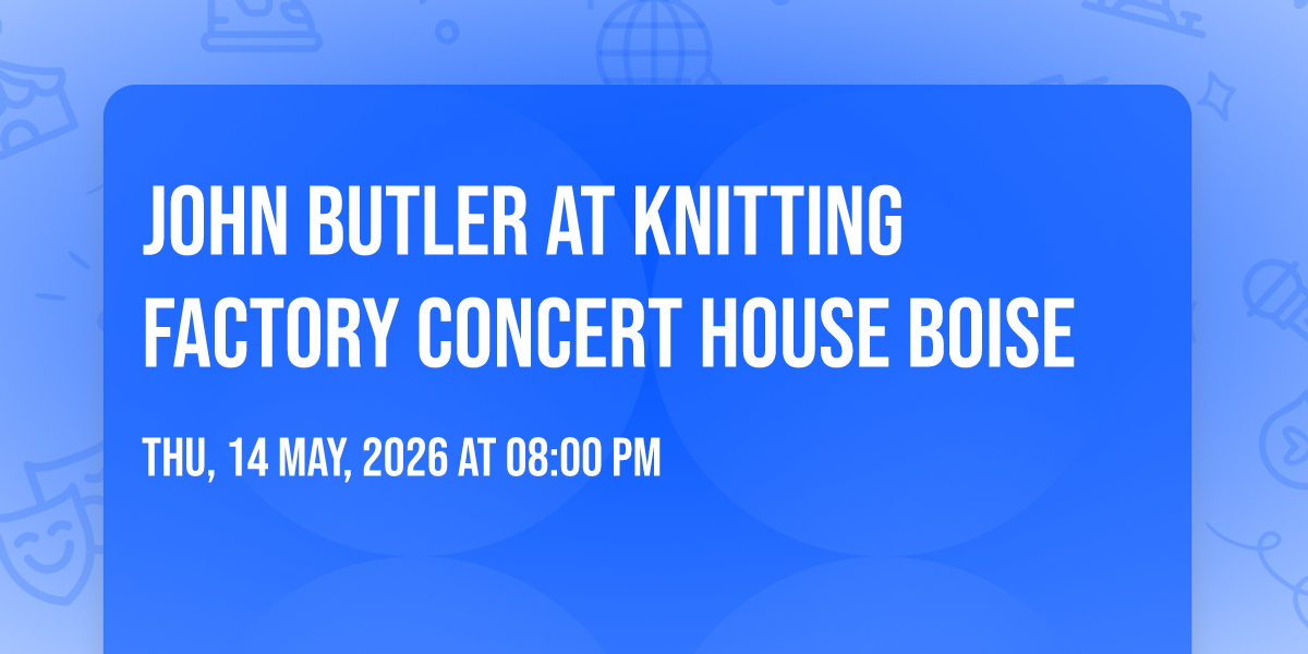 π Prepare to be amazed at John Butler at Knitting Factory Concert House Boise, the most anticipated gathering of the season! π Set against the stunning backdrop of Knitting Factory Concert House Boise in vibrant Boise, ID, this event promises to redefine your expectations. π Mark your calendars for May 14th, 2026 at 08:00 PM and get ready to immerse yourself in an atmosphere of wonder and excitement. β¨ From the moment you arrive, you'll be transported into a world where memories are made and stories come alive. They have crafted an experience that perfectly harmonizes entertainment, innovation, and community spirit. π Join us as we create moments that will be discussed for years!