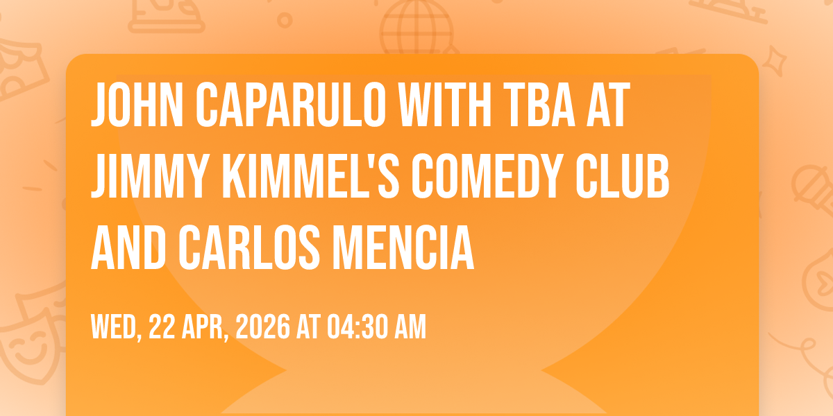 π Location: 36.1182, -115.171π Be part of history at John Caparulo with TBA at Jimmy Kimmel's Comedy Club and Carlos Mencia, an extraordinary gathering that will captivate your imagination! ποΈ The prestigious Jimmy Kimmel's Comedy Club at the Linq Promenade in Las Vegas, NV sets the stage for an unforgettable experience on April 22nd, 2026 at 04:30 AM. β¨ They are bringing together the finest elements of entertainment and innovation to create moments that will take your breath away. From the moment you arrive, you'll be immersed in an atmosphere of wonder and excitement. π― This carefully planned event ensures every guest experiences something truly special. π Early booking is recommended for this must-attend event of the season!
