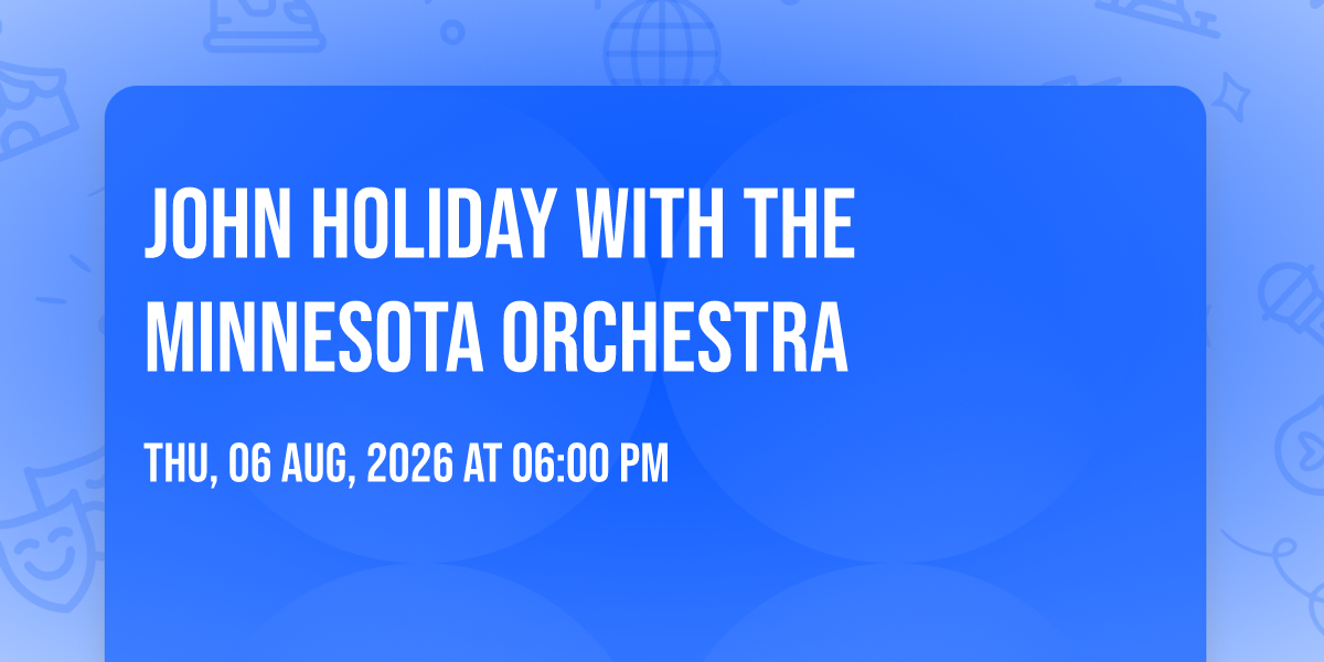 ✨ Enter a world of endless possibilities at John Holiday With The Minnesota Orchestra, where every moment tells a story! 🏛️ The stunning Orchestra Hall - MN in vibrant Minneapolis, MN transforms into a realm of wonder on August 6th, 2026 at 06:00 PM. 🌟 They have crafted an experience that goes beyond the ordinary, combining elements of surprise, delight, and pure entertainment. Every detail has been thoughtfully considered to ensure your journey with us is nothing short of extraordinary. 🎯 Join fellow adventure seekers and memory makers in this celebration of imagination and innovation. 🎊 Reserve your spot today and be part of something truly special!http://maps.seatics.com/OrchestraHall-MN_Endstage_2016-07-14_2016-07-11_1152_SVGC_tn.gif