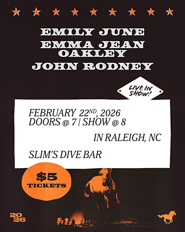 John Rodney and the 3 Dollar Bills, Emily June, and Emma Jean Oakley are rockin out at Slim’s on February 22nd at 8pm! From Durham NC, John Rodney and the 3 Dollar Bills is a four piece band fronted by self described queer redneck John Rodney. They bring a unique kind of country music that brings comedy and honky tonk to the party. Joining the bill is Emily June, and Emma Jean Oakley!