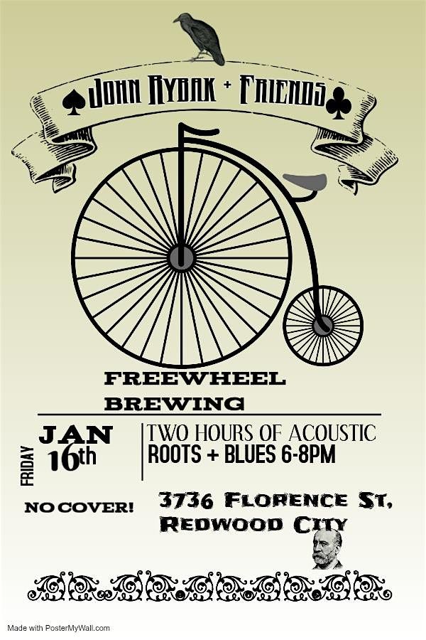 2 hrs free acoustic roots + blues with John Rybak + Friends @ Freewheel Brewing in Redwood City Fri 1/16 6-8PM!About this Event