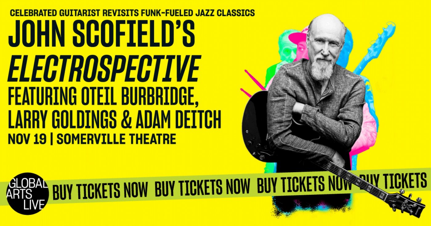 Across his 54-year career, 3-time Grammy winner John Scofield has never stopped pushing jazz forward, often venturing into the funk-driven fusion that shaped some of his most iconic work. With Electrospective, Scofield revisits his classic groove-based fan favorites with the seasoned perspective of several decades—drawing from his Blue Matter, Überjam, and A Go Go bands, along with new material. He’s joined by a stellar band of musicians including super funk drummer/producer Adam Deitch (Lettuce), keyboardist Larry Goldings (Scary Goldings, James Taylor), and legendary bassist Oteil Burbridge (Dead & CO., Tedeschi Trucks, Allman Brothers). Together, they promise a night of electrifying improvisation.