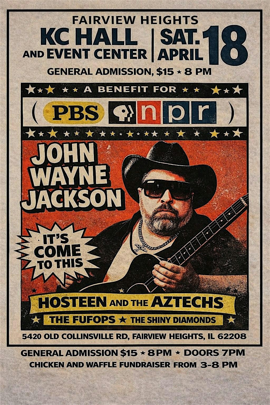 Join us in person for an unforgettable evening with John Wayne Jackson and Friends! It's all happening for a great cause: A Benefit for PBS and NPR. Come enjoy fantastic performances, good vibes, and support public broadcasting. Don’t miss out on this special event—bring your friends and have a blast while giving back!