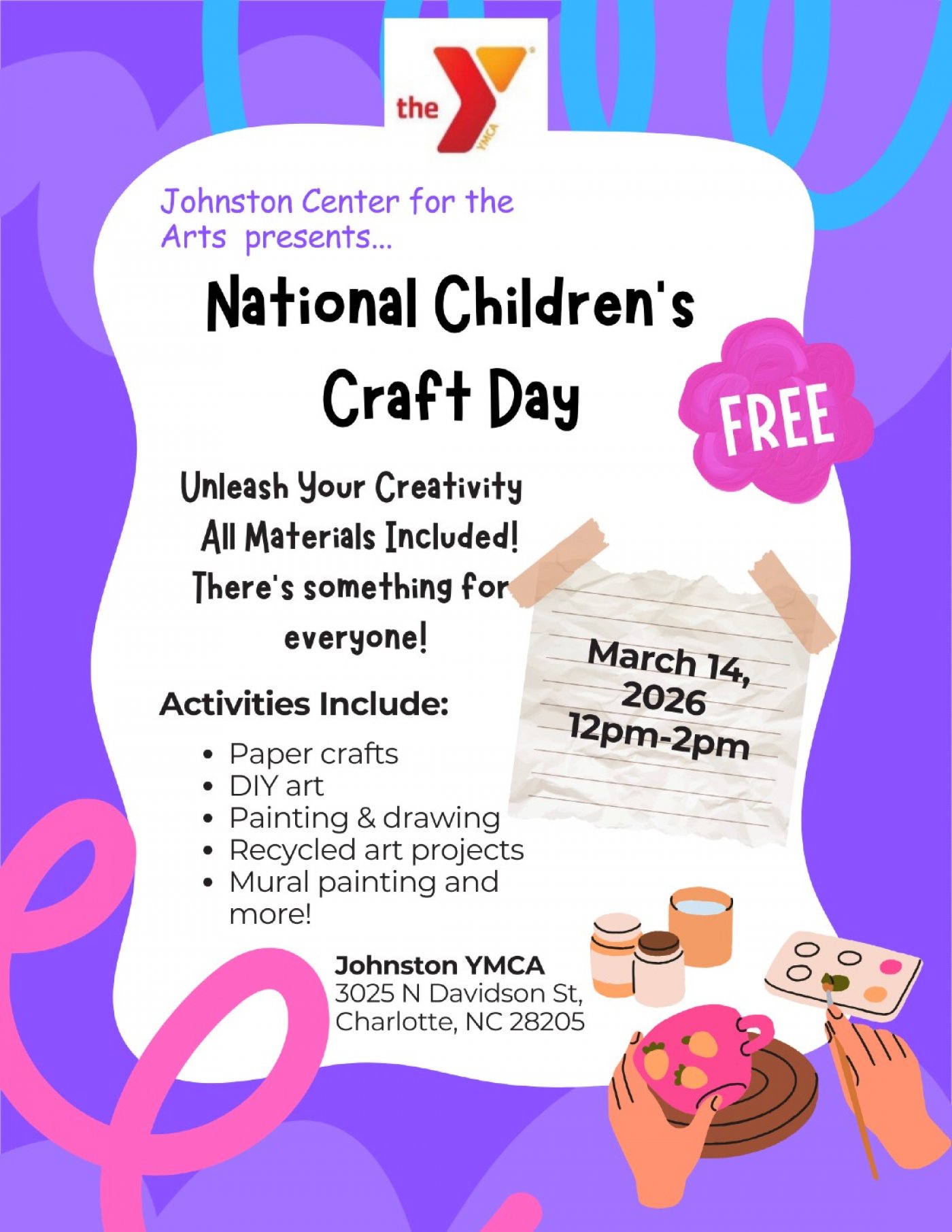 Calling all Creatives! Join us at Johnston Center for the Arts on Saturday, March 14th from 12pm-2pm for National Children's Craft Day!