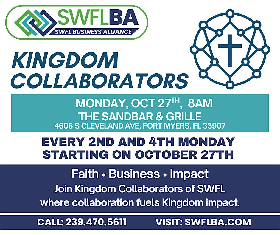 Join Kingdom Collaborators of Southwest Florida, a network of believers dedicated to building stronger businesses and a stronger Kingdom.