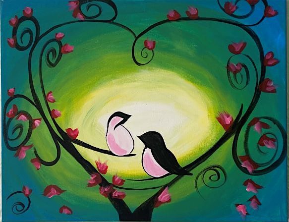 Join us for Chickadees in Love at this fun Paint and Sip Painting event