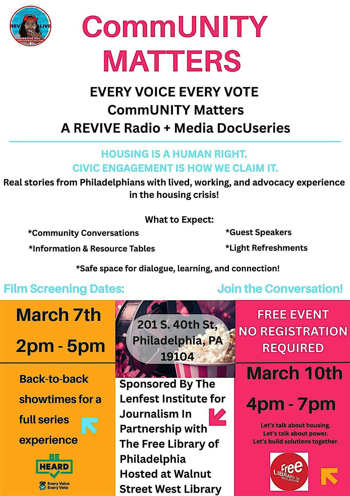 JOIN US: NEW SCREENING CommUNITY Matters Housing DocUseries!