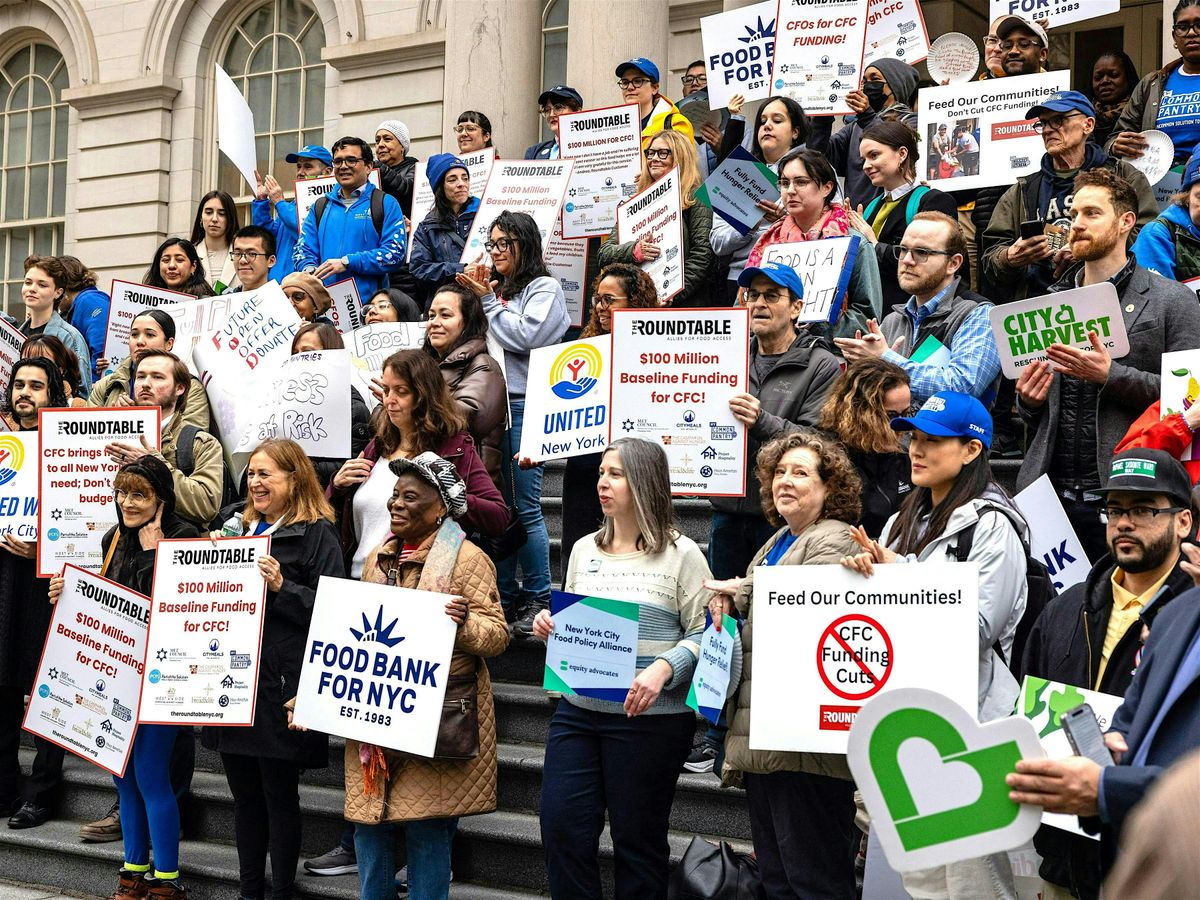 New Yorkers face an affordability crisis and record high food prices. Food pantries and soup kitchens are experiencing demand up to 80% higher than pre-pandemic levels, and federal resources and safety net programs are on the chopping block of budget negotiations. We’re gathering on the steps of City Hall to ask our City leaders to fund CFC at $100M in the next budget.